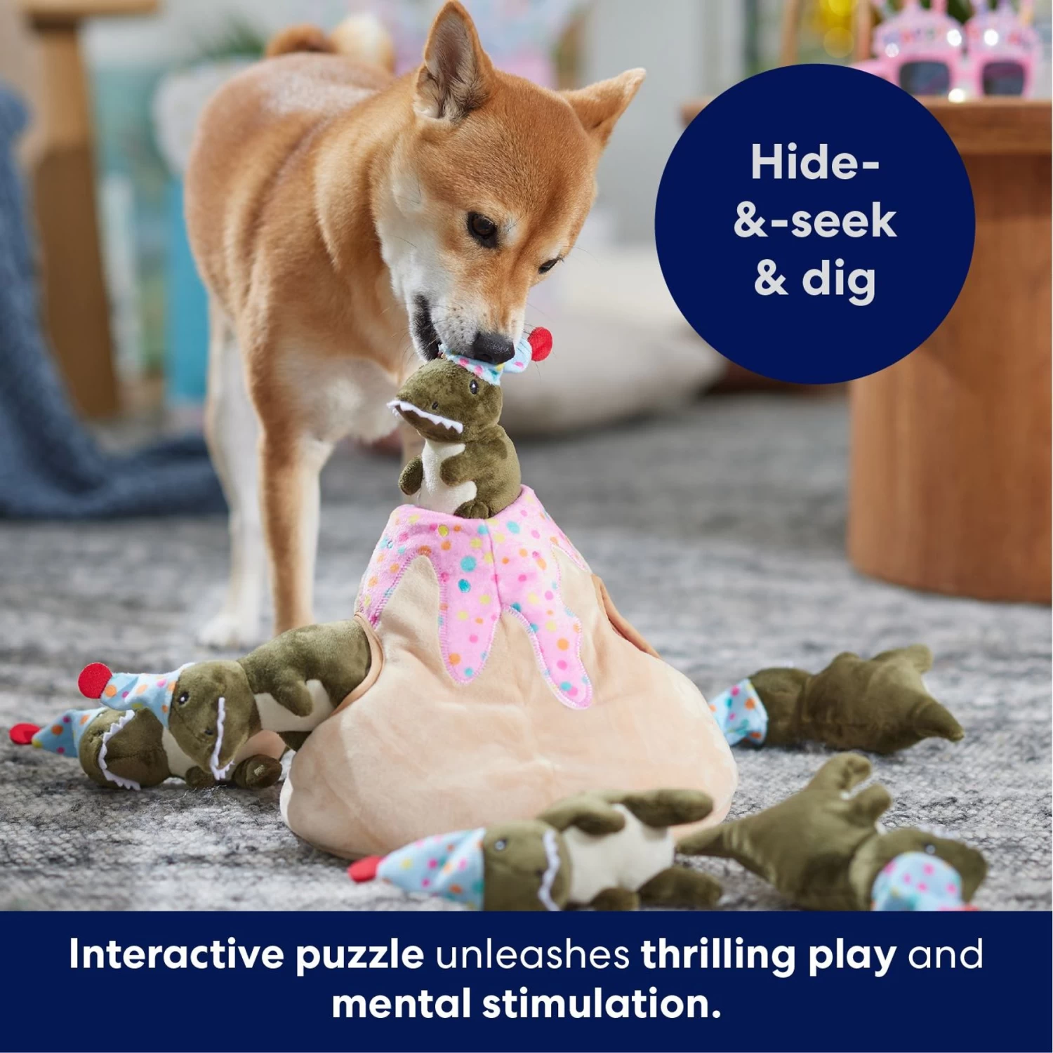 Be the first to review “Frisco Birthday Volcano & Dinosaurs Hide & Seek Puzzle Plush Squeaky Dog Toy” Cancel reply