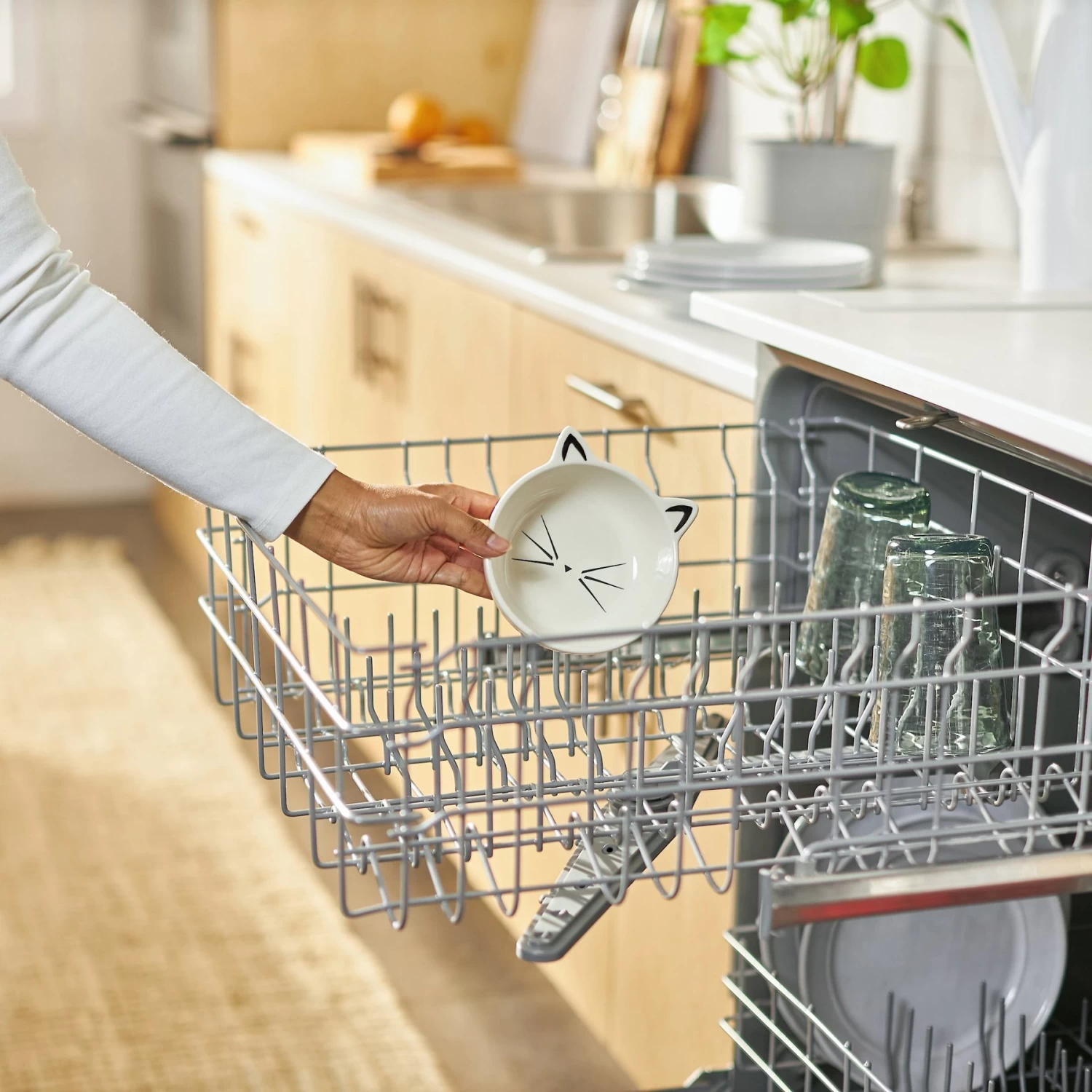 - Adorable ceramic bowl with kitty design made for fun, playful cats.