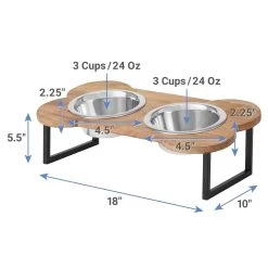 Frisco Premium Wood Elevated Bone Shape Stainless Steel Double Diner Dog & Cat Bowl, 3 Cup