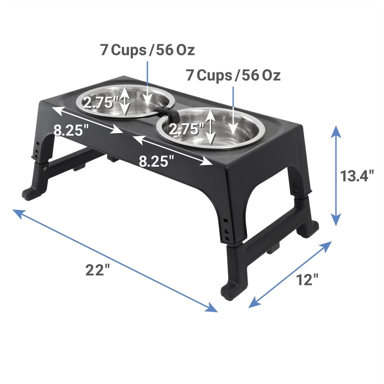 - Adjustable elevated bowl holder to fit your dog’s preferred height.