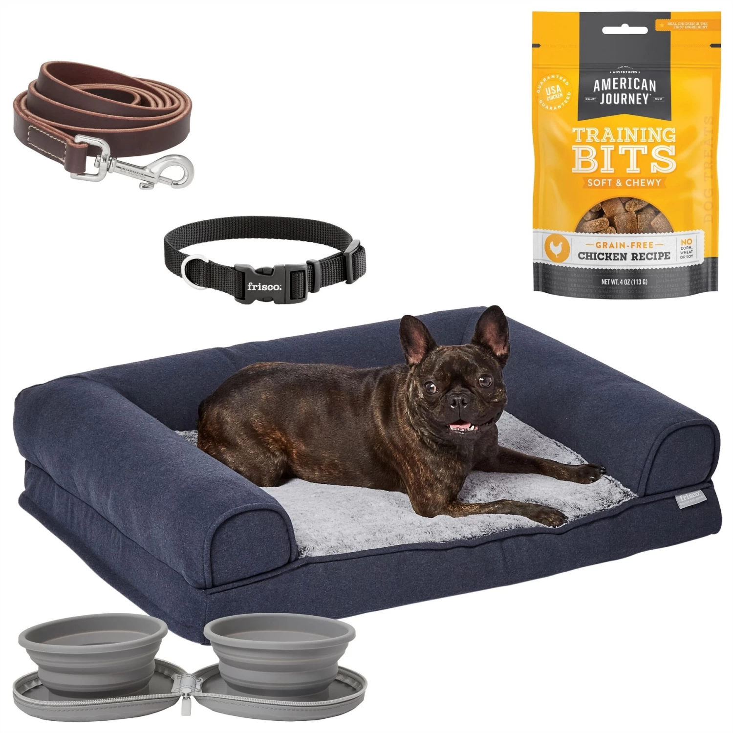Frisco Travel Collapsible Silicone Dog & Cat Bowl, Gray, Large, 3 Cups — Take mealtime anywhere with the Frisco Travel Collapsible Dog Bowl. This two-in-one set features two pop up bowls that collapse, fold up and zip shut for compact and convenient storage.